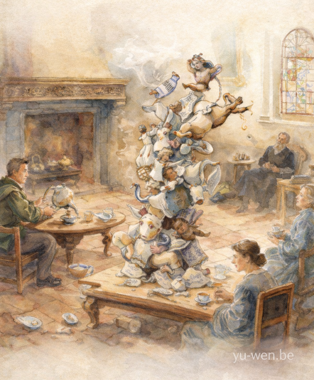 當年伊拉斯謨用「愚蠢」說真話;現在,這些作品用「荒謬」做同樣的事。房間裡的瓷偶像在開派對,而歷史空間變成鏡子。