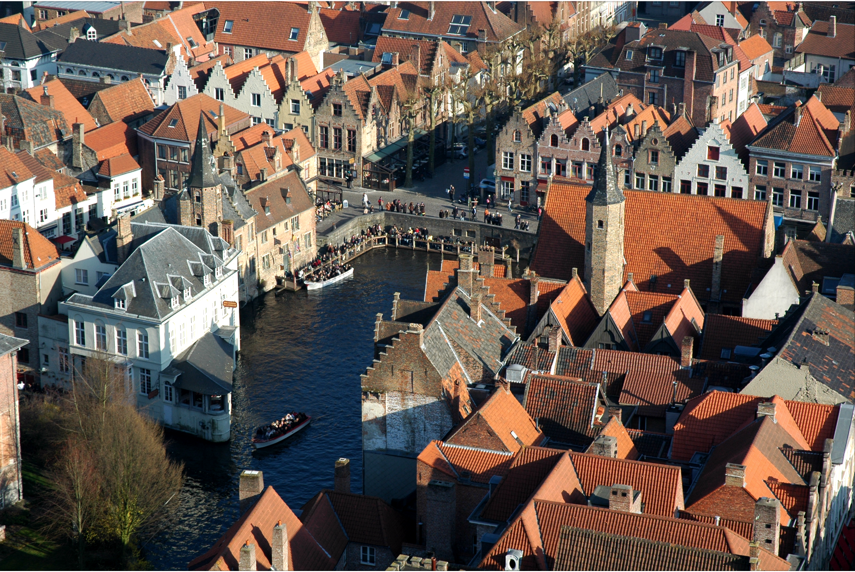 電影就是電影,跟真實人生還是有脫節的距離,整個鐘塔的頂樓都被鐵絲網圍起來,想學Ray悠哉在塔頂觀賞四方風景,還真不是件容易的事,更別想自由的往下一躍;幸運的是,那天天氣很好,從塔頂望向整個法蘭德斯低地平原,還可以看到遠方幾座風車遠遠的迎風飄揚,法蘭德斯山型建築、河流、小橋,像是童話故事小城fairy tale town般映入眼簾,氣喘吁吁爬上366階迴旋樓梯,代價果然還是值得的。